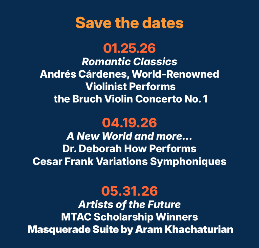 During our next concert, the first of 2026; Andrés Cárdenes will perform the Bruch Violin Concerto No. 1, and Beach Cities Symphony will perform works from Beethoven and Mendelssohn.
